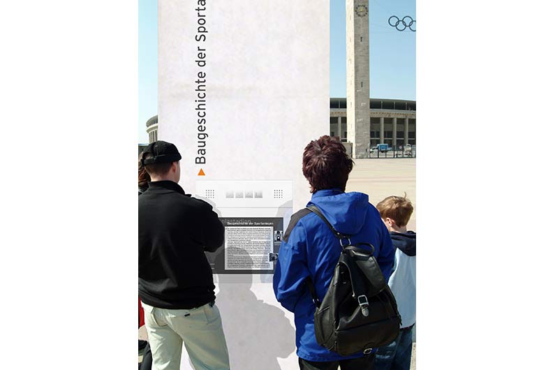 Die Walter Bau-AG hat in Abstimmung mit dem Land Berlin, vertreten durch die Senatsverwaltung für Wissenschaft, Forschung und Kultur, die Senatsverwaltung für Stadtentwicklung und die Senatsverwaltung für Bildung, Jugend und Sport im März 2004 einen Kunstwettbewerb mit acht eingeladenen Künstlerinnen und Künstlern, Architektinnen und Architekten für einen Ort der zentralen Information vor dem Olympiastadion Berlin ausgelobt.